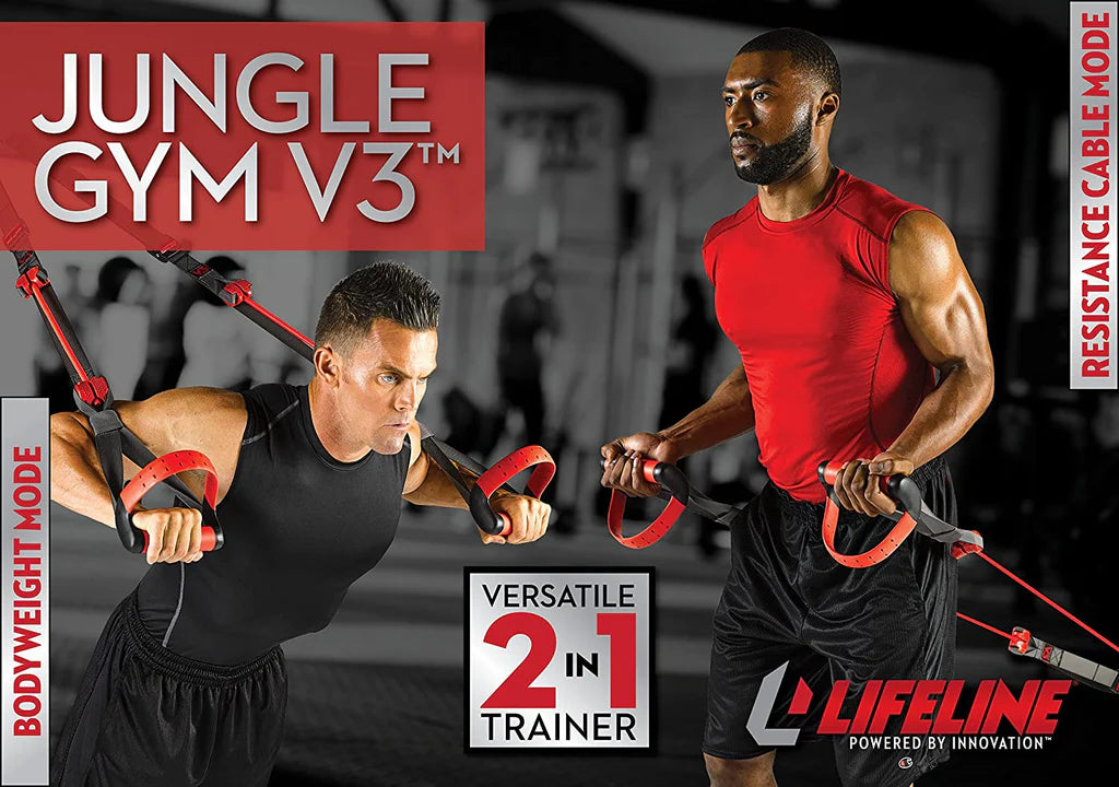 The Jungle Gym Bodyweight Trainer has been refreshed and improved, offering a versatile dual-mode design that combines bodyweight and resistance cable training. It supports a wide range of exercises and movement patterns to help develop core strength.